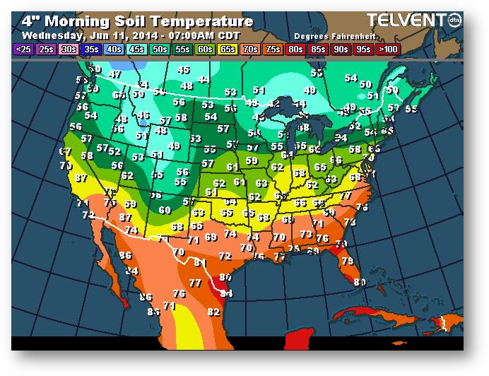Température du sol en matinée à une profondeur de 4 pouces
