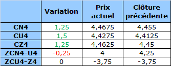 - Prix calculé en fonction du rapport 201 du CME hier :