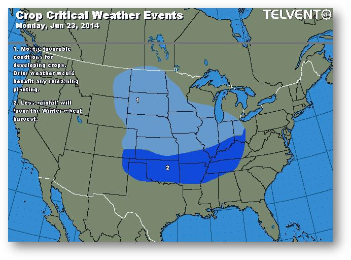 L'humidité dans la partie nord-ouest de la Corn Belt fait diminuer les prévisions de rendement record. Il sera ainsi difficile de maintenir la dynamique haussière. Aujourd'hui, l'évaluation de l'état des cultures devrait indiquer un léger recul. La Chine n'a réussi à vendre que 918 000 tonnes des 5 millions mis aux enchères. Les stocks commencent à poser problème vu les cultures actuelles.