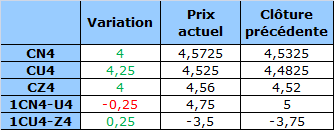 - Prix calculé en fonction du rapport 201 du CME hier :