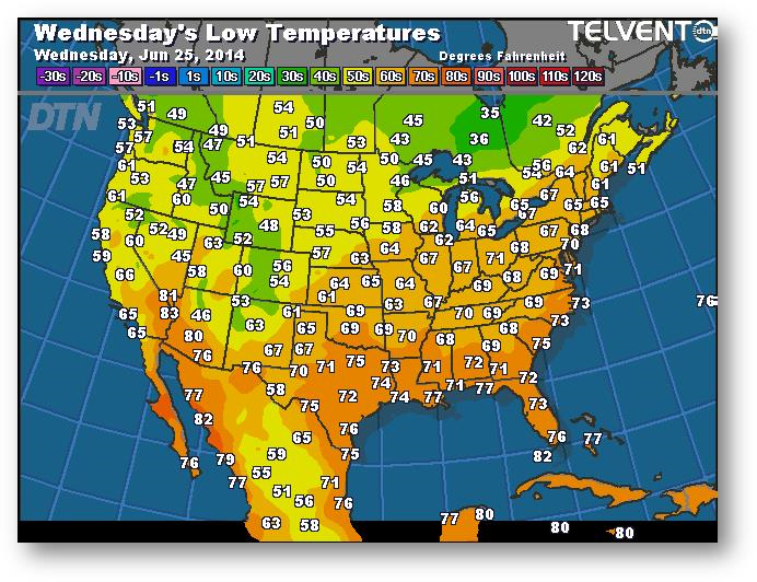 Prévisions des températures les plus basses (degrés Farenheit)