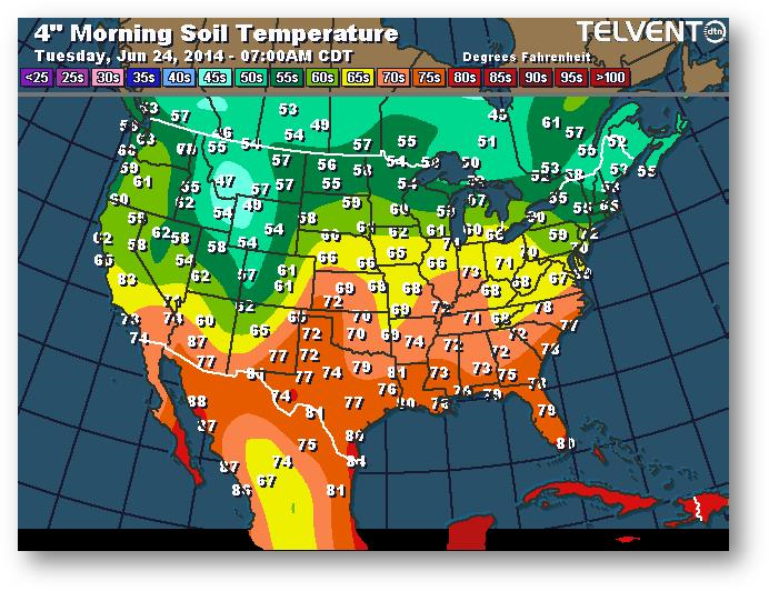 Température du sol en matinée à une profondeur de 4 pouces