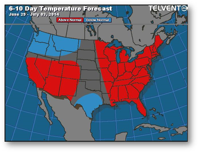 Prévisions de températures pour les 6 à 10 prochains jours