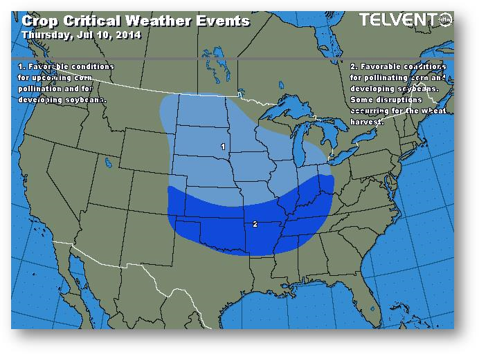 La 7e séance consécutive de baisse; les conditions météo demeurent excellentes et on s'attend à un rapport baissier demain. Le rendement pourrait approcher de 170 boisseaux/acre, ce qui pèserait lourdement sur le marché. Les agriculteurs se départissent d'une partie de l'ancienne récolte, mais ce n'est pas suffisant si l'on tient compte de ce qui entrera dans leurs silos à la prochaine récolte. Les ventes à l'exportation devraient se situer entre 225 000 et 400 000 tonnes pour l'ancienne récolte et entre 375 000 et 650 000 tonnes pour la nouvelle récolte. La production d'éthanol a subi une légère diminution, passant de 953 000 à 927 000 barils/jour, mais c'est 5% supérieur à la production d'il y a un an. Les marges demeurent très élevées.