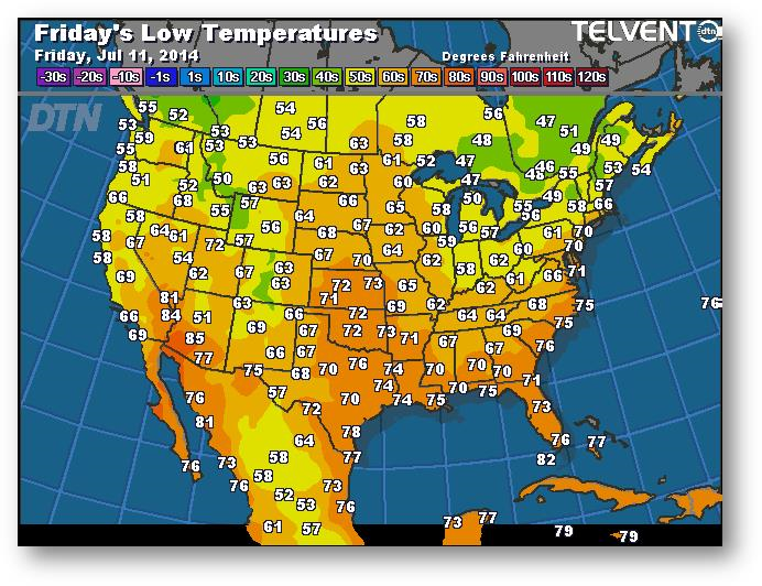 Prévisions des températures les plus basses (degrés Farenheit)