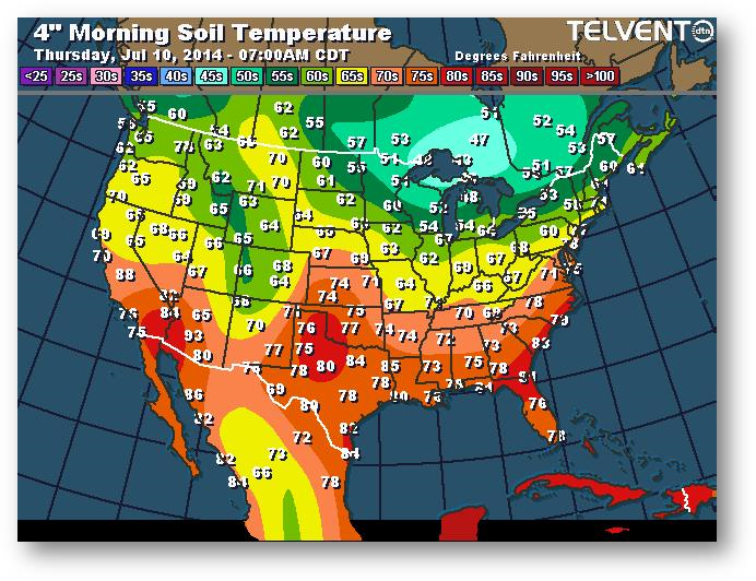 Température du sol en matinée à une profondeur de 4 pouces