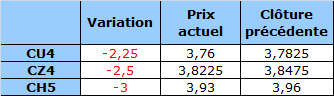 - Prix calculé en fonction du rapport 201 du CME hier :