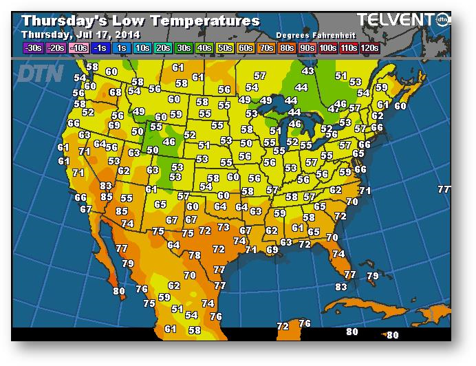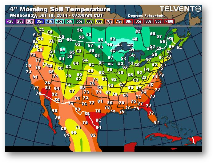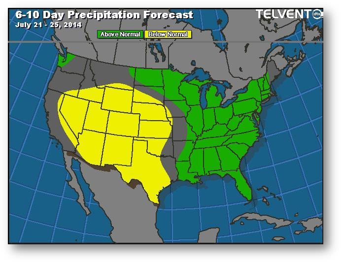 Il semble très difficile de voir toute hausse dans le maïs comme autre chose qu'un simple rebond technique. Les conditions météo pour la pollinisation n'ont pas été aussi favorables depuis plusieurs dizaines d'années, ce qui cause l'augmentation des prévisions de rendement. À la suite de la période de pollinisation, le marché tournera son attention vers la possibilité d'un gel précoce. À court terme, de petits secteurs pourraient avoir du temps un peu plus chaud et sec. Si c'est effectivement le cas, le soja profiterait grandement de ce temps plus sec. Les agriculteurs semblent plus enclins à se départir de leur ancienne récolte, mais pas au point de faire écrouler le marché au comptant.