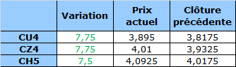 - Prix calculé en fonction du rapport 201 du CME hier :