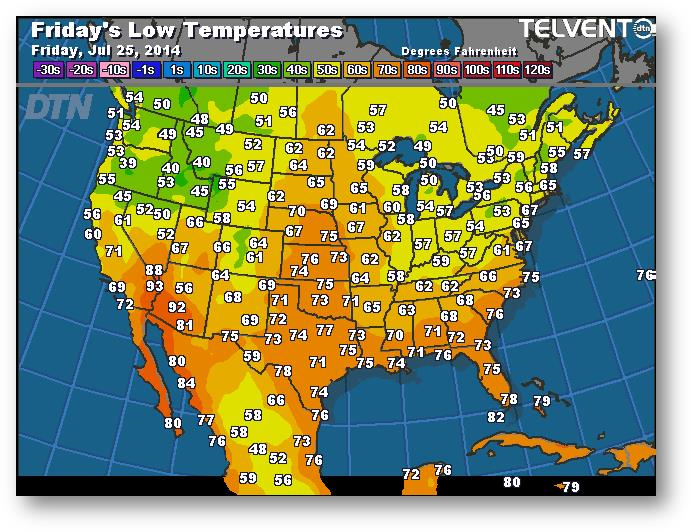 Prévisions des températures les plus basses (degrés Farenheit)