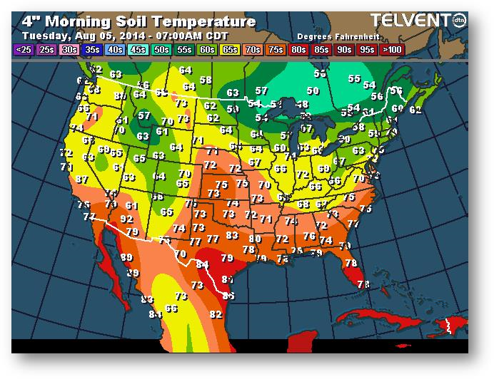 Température du sol en matinée à une profondeur de 4 pouces