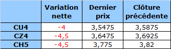 - Prix calculé en fonction du rapport 201 du CME hier :