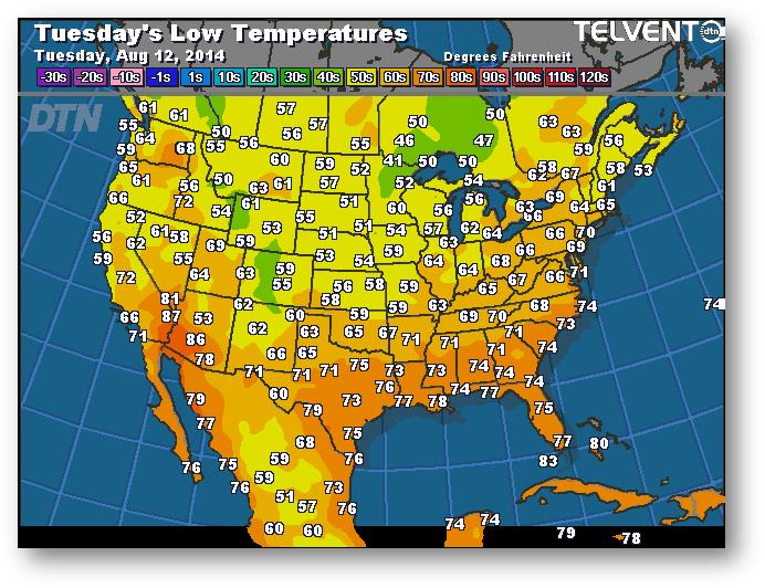 Prévisions des températures les plus basses (degrés Farenheit)