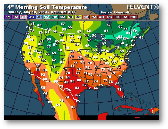 Température du sol en matinée à une profondeur de 4 pouces