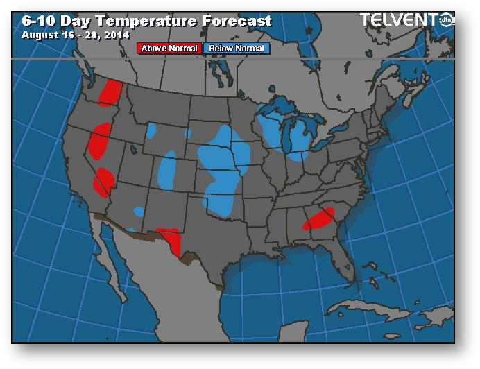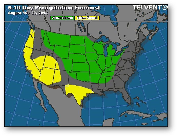Le rapport COT publié vendredi a montré une augmentation de la position longue, probablement due en partie à la montée des tensions en Russie la semaine dernière. Rien de bien nouveau dans le monde du maïs. Les prix devraient se maintenir pour un certain temps puisque le rendement s'annonce important et que les prévisions météo n'indiquent aucune menace.