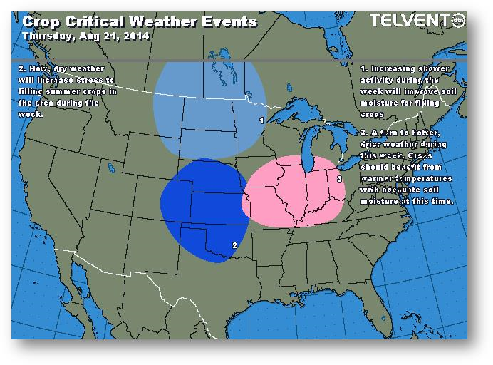 La tournée ProFarmer se déplace maintenant dans les états avec la production la plus élevée. On prévoit des rendements records en Indiana et en Illinois (185 et 196 boisseaux/acre). Pour le Nebraska, on a évalué le rendement à 164 boisseaux/acre, ce qui semble faible. La tournée se dirige vers l'Iowa et le Minnesota aujourd'hui; les résultats devraient sortir après la clôture. Un estimé du rendement pour l'ensemble des États-Unis devrait être publié en fin de journée vendredi.