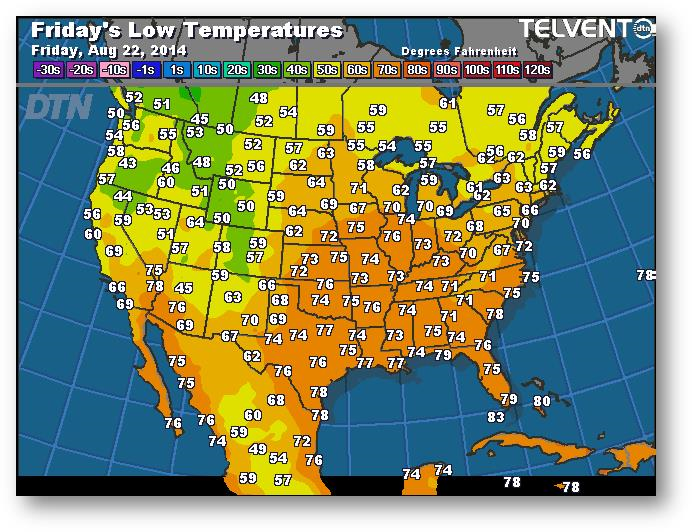 Prévisions des températures les plus basses (degrés Farenheit)