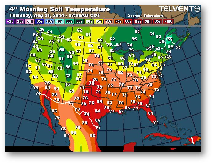 Température du sol en matinée à une profondeur de 4 pouces