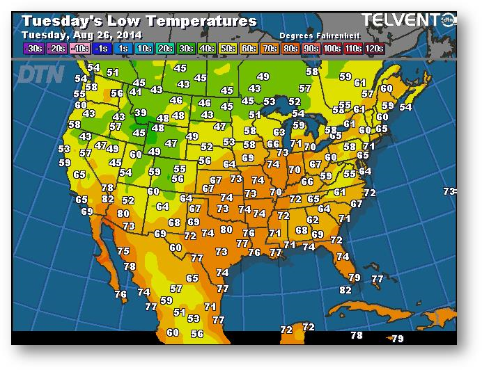 Prévisions des températures les plus basses (degrés Farenheit)