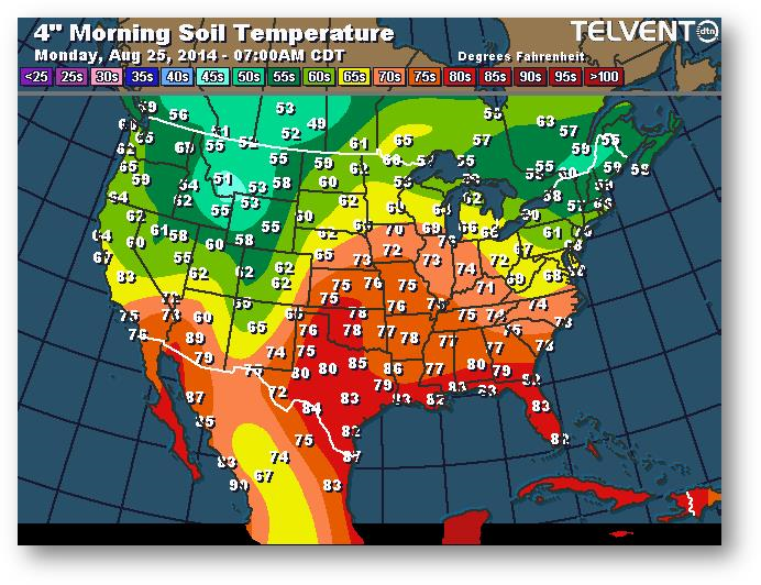 Température du sol en matinée à une profondeur de 4 pouces