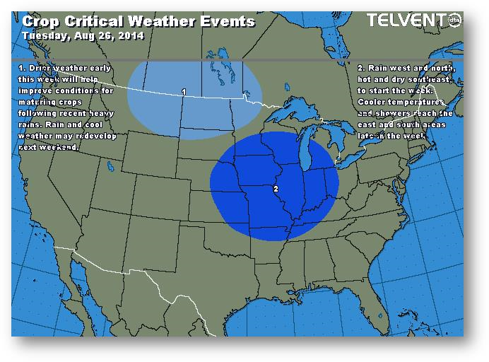 La récolte dans le sud des États-Unis se traduit par des rendements importants; les agriculteurs ont ainsi décidé de se départir d'une partie de l'ancienne récolte hier, ce qui maintient de la pression sur le marché du maïs. L'état des cultures s'est légèrement amélioré (21% excellent et 52% bon) en Illinois, au Michigan, au Minnesota et au Dakota du Sud. La récolte dans le sud/delta progresse bien, mais est généralement en retard sur la moyenne. La Louisiane a récolté 38% de son maïs comparativement à 60% il y a un an. Un tel retard pourrait ralentir la pression sur les contrats à terme puisque les bases au comptant aux États-Unis demeurent fermes.