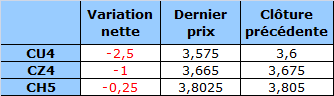 - Prix calculé en fonction du rapport 201 du CME hier :