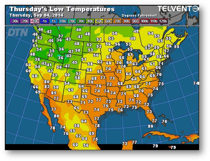Prévisions des températures les plus basses (degrés Farenheit)