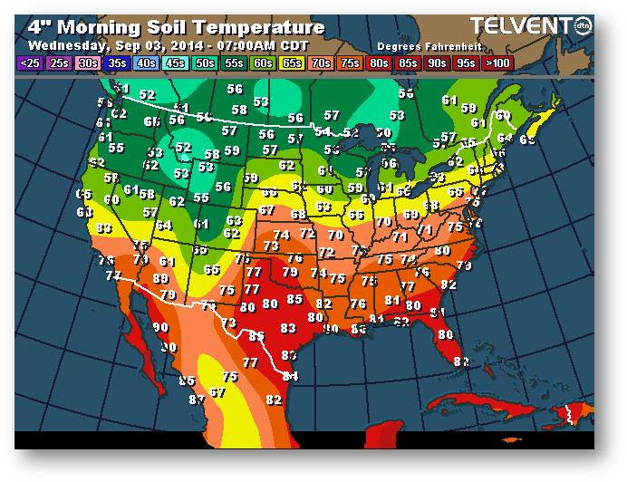 Température du sol en matinée à une profondeur de 4 pouces