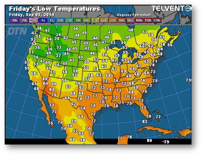 Prévisions des températures les plus basses (degrés Farenheit)