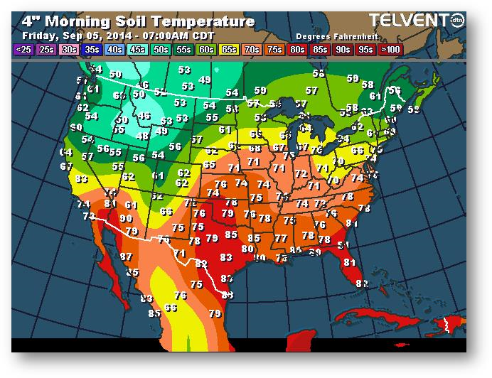 Température du sol en matinée à une profondeur de 4 pouces