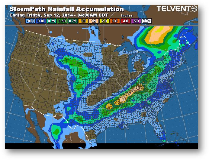 Trajectoire de tempête – Accumulation de précipitations (pouces)