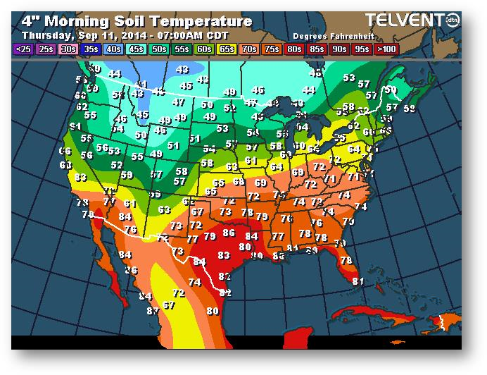 Température du sol en matinée à une profondeur de 4 pouces