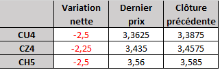 - Prix calculé en fonction du rapport 201 du CME hier :