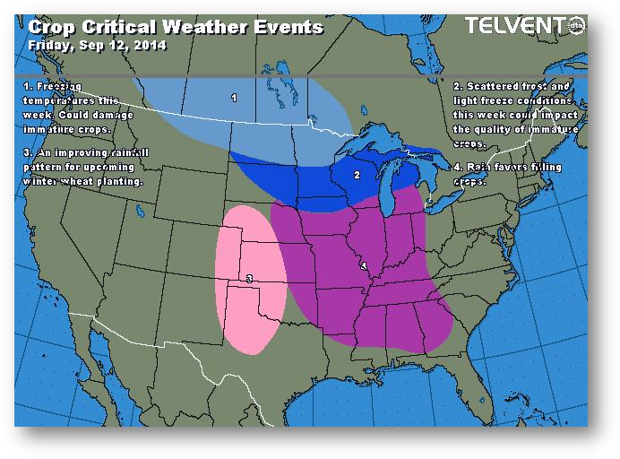Le prix du maïs a rebondi de son creux tard en séance et a clôturé en baisse de 0,05$. Le rapport du USDA présentait une évaluation du rendement à 171,7 boisseaux/acre pour une production de 14,395 milliards de boisseaux, ce qui correspond aux estimations les plus élevées du marché. Alors qu'est-ce qui nous attend avec la récolte? L'augmentation de 4,3 boisseaux/acre est la plus importante des 20 dernières années entre août et septembre. Les ventes à l'exportation ont été de 563 000 tonnes pour 2014-2015. Du côté des ventes de l'ancienne récolte, 1,34 million de tonnes ont été roulées à la nouvelle récolte. Les expéditions de l'ancienne récolte se sont élevées à 186 millions de boisseaux. À l'échelle internationale, le blé fait concurrence au maïs dans le domaine de l'alimentation animale.