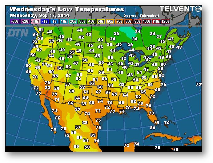 Les conditions météo dans la Corn Belt demeurent fraîches mais moins humides pour le reste de la semaine, ce qui devrait permettre une récolte hâtive dans certaines régions. On s'attend à ce que la récolte s'accélère au cours des deux prochaines semaines. Les inspections à l'exportation ont révélé un résultat de 29,2 millions de boisseaux, ce qui était inférieur aux attentes; la majorité des chargements étaient à destination du Mexique et du Japon. Le USDA a indiqué que 27% du maïs a atteint le stade de maturité comparativement à 20% il y a un an et à une moyenne de 39%. La récolte est clairement en avance sur l'année dernière, mais en retard sur les autres années. Toutefois, les rendements et les stocks importants devraient atténuer toutes les inquiétudes.