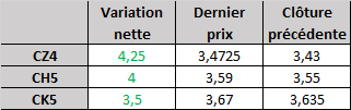 - Prix calculé en fonction du rapport 201 du CME hier :