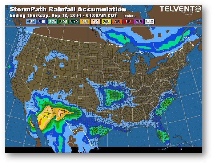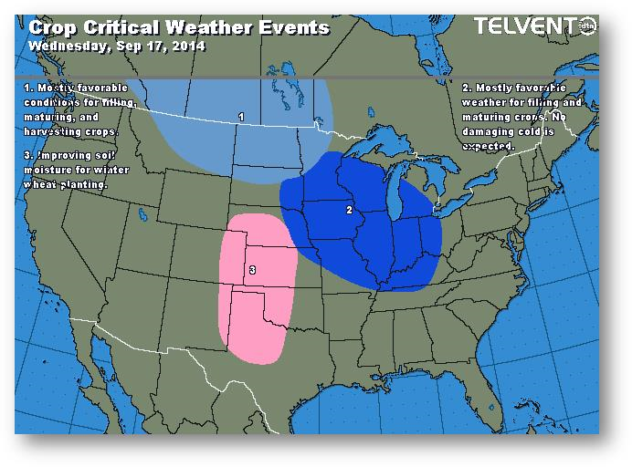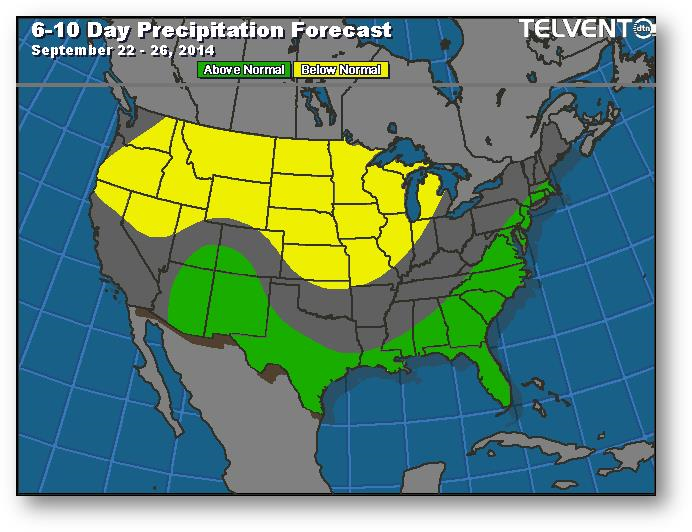 Le grand écart entre les données de la FSA et du NASS fait jaser. L'écart devrait diminuer, toutefois le marché ne devrait pas réagir énormément vu les rendements obtenus jusqu'à maintenant. Si l'écart devait être maintenu, cela signifierait des stocks de report moins importants que prévu actuellement. Les marchés au comptant semblent s'adoucir à l'approche de la pression de la récolte; les agriculteurs se sentent pressés de sortir l'ancienne récolte pour faire de la place pour la nouvelle.