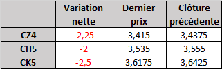 - Prix calculé en fonction du rapport 201 du CME hier :