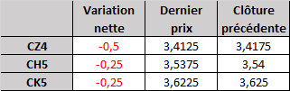 - Prix calculé en fonction du rapport 201 du CME hier :