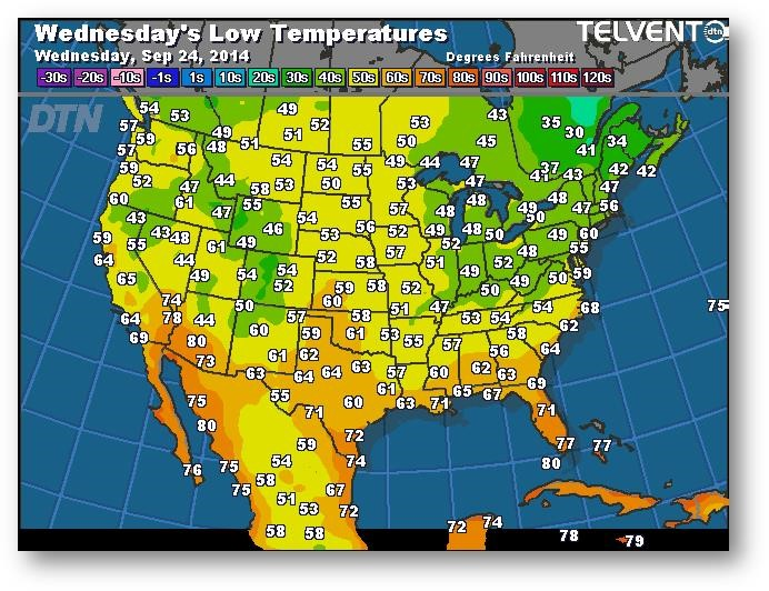 Prévisions des températures les plus basses (degrés Farenheit)
