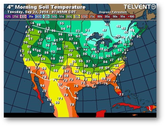 Température du sol en matinée à une profondeur de 4 pouces