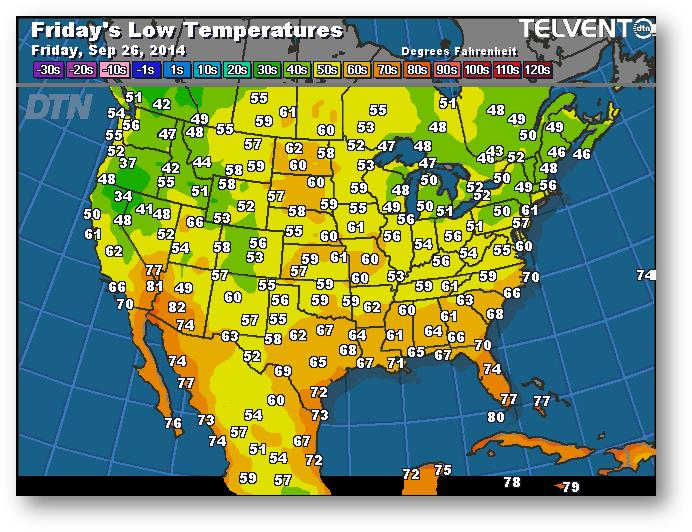 Prévisions des températures les plus basses (degrés Farenheit)