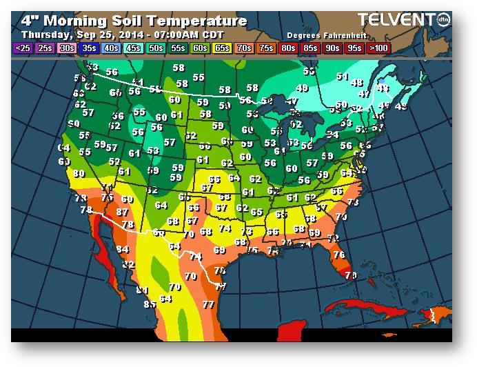 Température du sol en matinée à une profondeur de 4 pouces