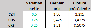 Contrat à terme du maïs à 6 h HAC : stable