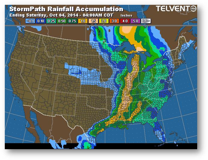 Trajectoire de tempête – Accumulation de précipitations (pouces)