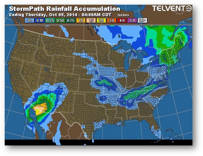 Trajectoire de tempête – Accumulation de précipitations (pouces)