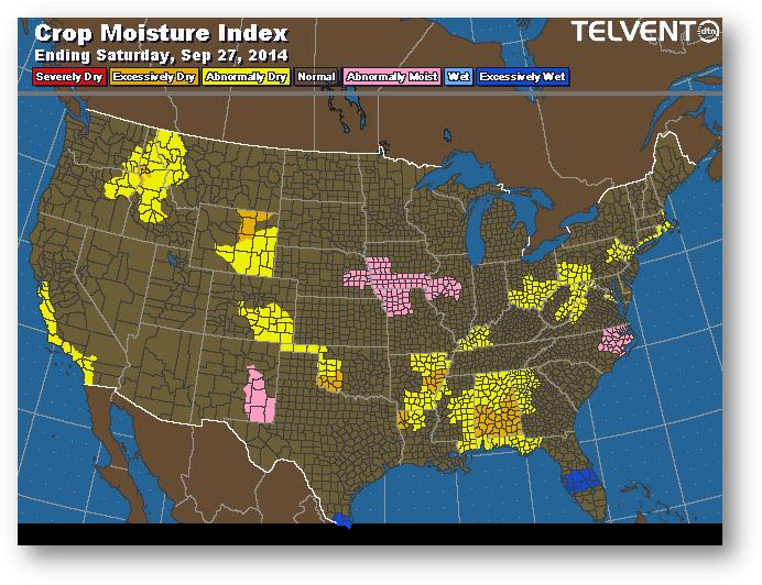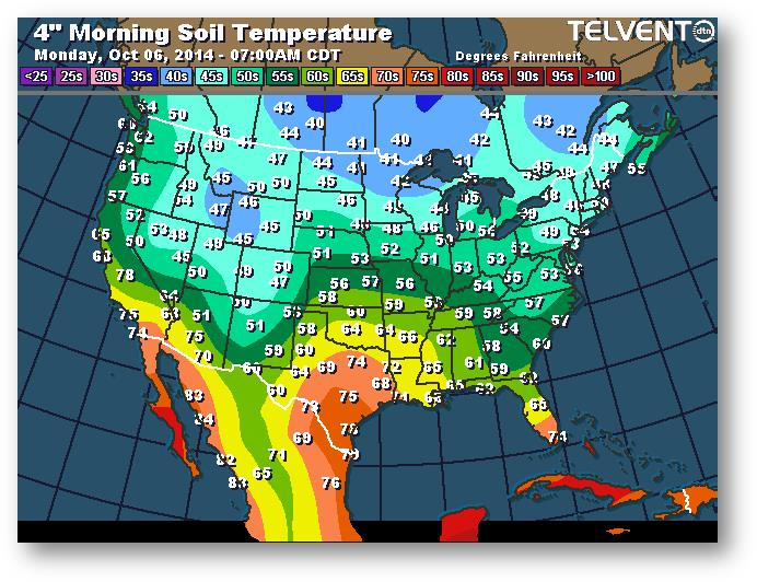 Le contrat de décembre (CZ4) se trouve maintenant à 0,30$ de son récent creux de contrat. Les prix ont brisé une ligne de tendance descendante majeure lundi, ce qui a déclenché un certain intérêt acheteur à court terme. Si le redressement se poursuit, on peut s'attendre à une résistance particulièrement forte à la combinaison de la moyenne mobile à 50 jours, du retracement de Fibonacci à 50% et du sommet de mi-septembre, qui se situent tous dans la fourchette entre 3,49$ et 3,51$.