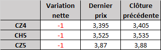 - Prix calculé en fonction du rapport 201 du CME hier :