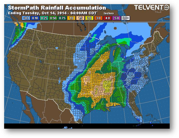 Trajectoire de tempête – Accumulation de précipitations (pouces)