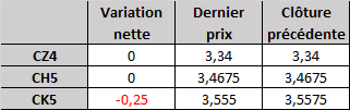 - Prix calculé en fonction du rapport 201 du CME hier :